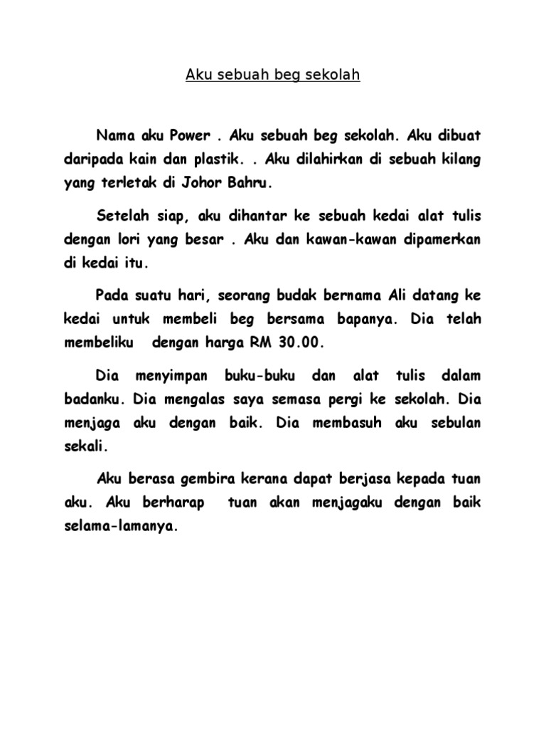 Aku Sebuah Beg Sekolah Karangan Pendek Aku Sebuah Beg Sekolah Aku Dilahirkan Di Sebuah Kilang Yang Terletak Di Johor Bahru Port2lepaks