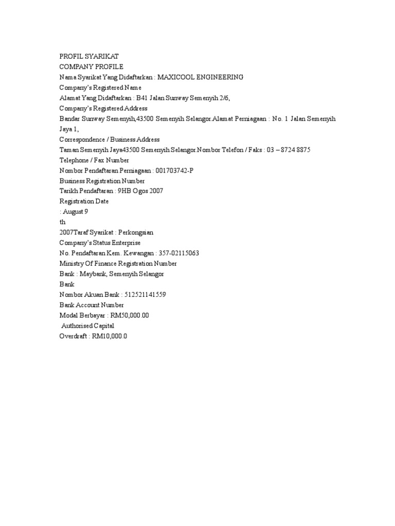 Doc Contoh Profil Syarikat Hisyam Ali Academia Edu